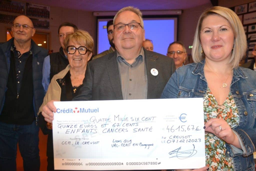 Charlotte Lamain, Présidente du Lions Club, en présence des membres du Club, des entreprises partenaires et des commerçants, a remis aux représentants de l’association Enfants Cancers Santé Bourgogne Franche-Comté un chèque de 4 617€, bénéfice intégral de cette action.
