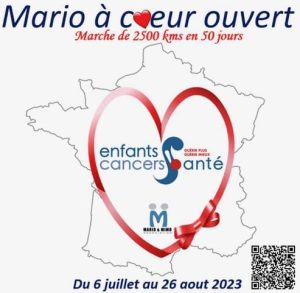 Le Président de l’Association Rennaise “Mario et Mimo” a décidé pour fêter le 25ème Anniversaire de la Fédération ENFANTS-CANCERS-SANTÉ, et ses 50 ans, de faire un Tour de France de 50 jours , soit au total un périple de 2500 Kilomètres. Départ le 6 juillet de Rennes à,11 heures place de la Mairie
